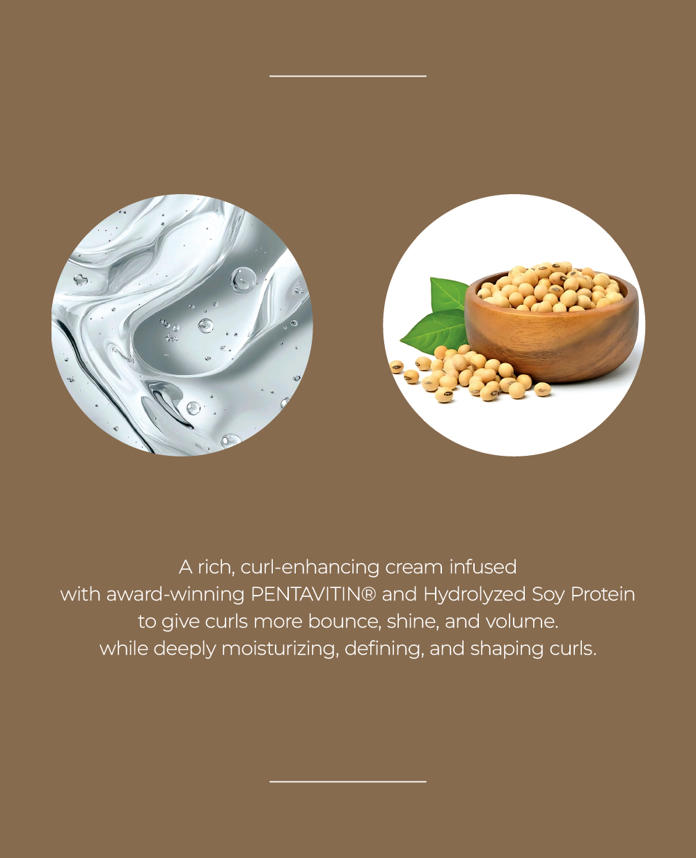 A curl-defining cream with PENTAVITIN® that adds bounce, shine, and volume while moisturizing and protecting your curls. Plant-based, sulphate-free, HALAL certified, and infused with essential oils for a soft, aromatic finish.